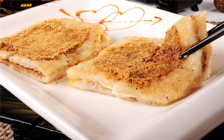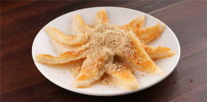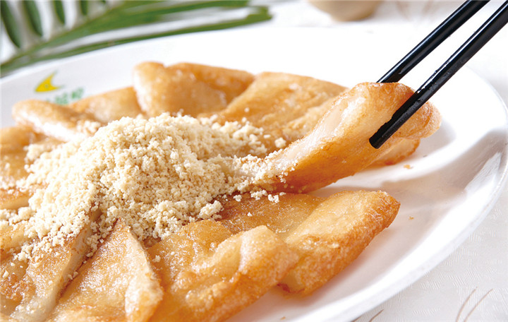 煎糍粑是一道美味可口的传统小吃。外焦里嫩,甜香滑糯。将平锅架火上,放油(不可多)烧热,均匀撒入红糖25克,随即将糍粑团下锅,用锅铲把糍粑团按成扁圆形,见底面煎黄即翻身,共翻两次;再下红糖50克,继续煎几分钟,即可出锅,在每个糍粑上均匀地撒少许糖。