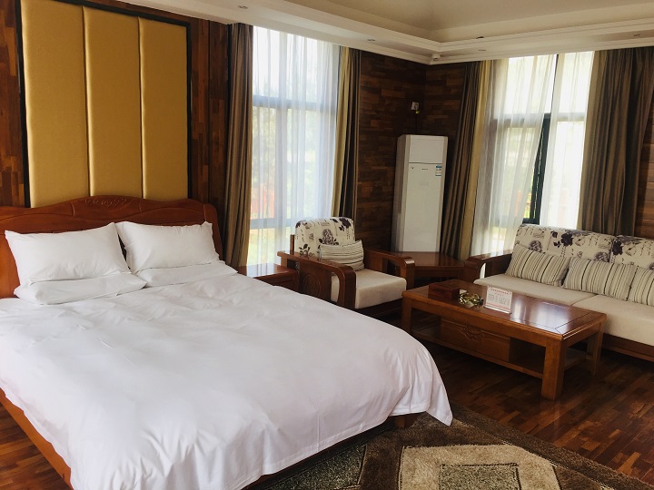 1、山庄现有住宿12间,7间豪华大床房、2间豪华套房、3间亲子房,可同时接待25人左右入住。