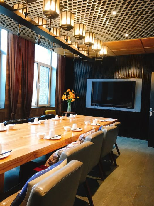 【包间简介】可容纳20人 包间内配有独立卫生间 可用餐、可会议、可投影、可加移动音响和麦克风、有独立卫生间、可开轰趴、可作为求婚场地(免费布置)⇧