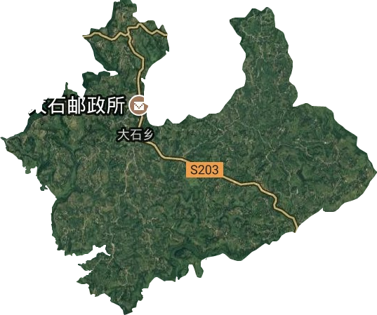 大石乡地处大石台地,地势西高东低、北高南低;地形为平状高丘连低山,地面高程一般在海拔380—577米;境内最高点位于豹山,海拔577米;最低点位于卷洞,海拔380米。