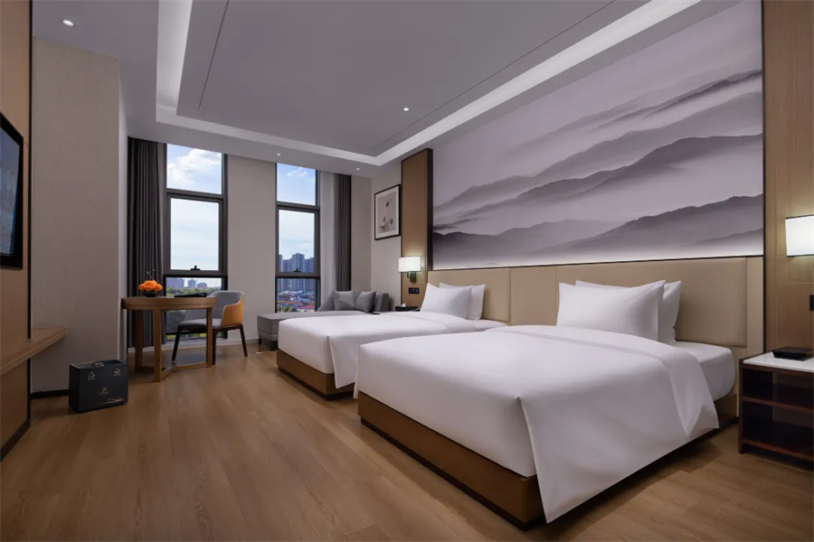 酒店秉承高山流水的设计理念,融合属地文化元素,续写知音邂逅故事,营造“结庐在人间 而无车马喧”的城市花园静谧体验,拥有设施完备的各式智能客房和套房。