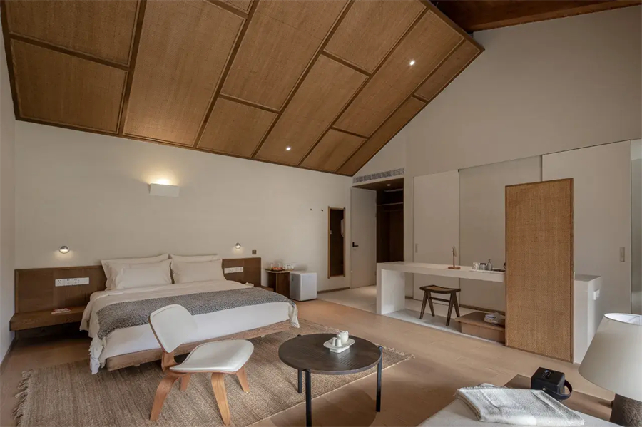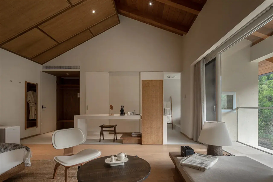 在这里,泡一壶清茶,看云卷云舒;或是夜幕低垂时,数着星星说晚安。原木家具的温润质感与山林的清新气息完美融合,打造出远离尘嚣的理想栖所。
