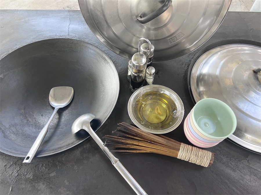 包含灶台费用(168元):柴火一捆10斤,做菜调料一份,案板刀一套,果蔬蓝、锅铲汤勺一套。