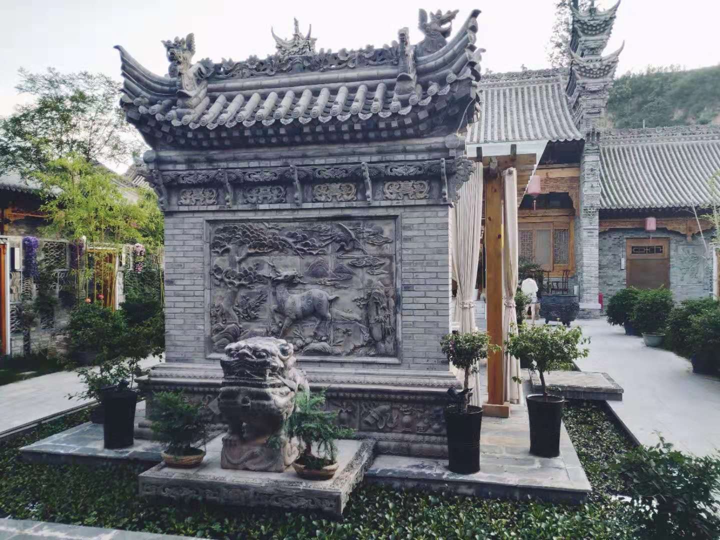 桃花源禅意民宿·璞宿,院内的白墙及旧式的灰砖灰瓦和木质元素是这里的主调,