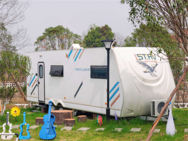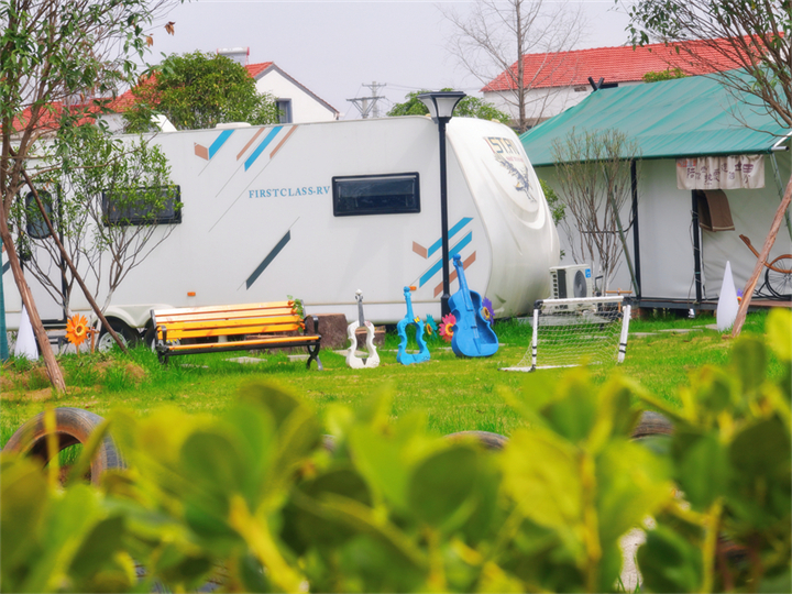 除了帐篷,营地内还有几辆房车,内部是大床加上下铺的房型设置,很适合带小孩子体验。