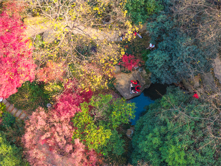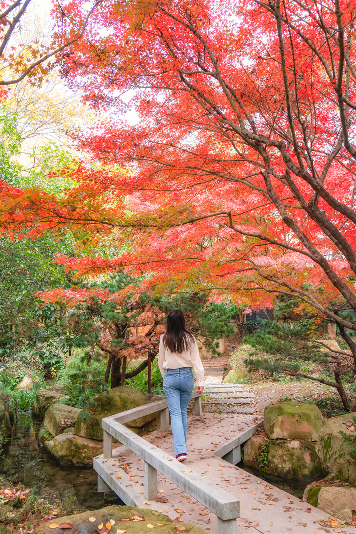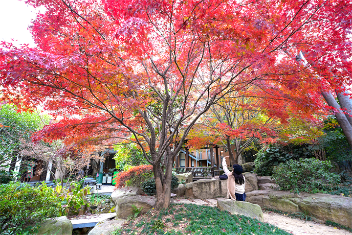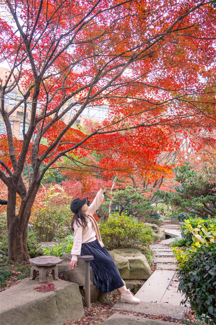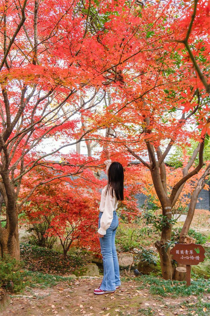 虽然这里的鸡爪槭数量不多,但长在院落中,树形舒展,拍照氛围感很好。