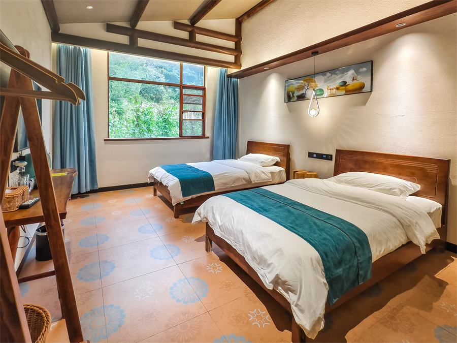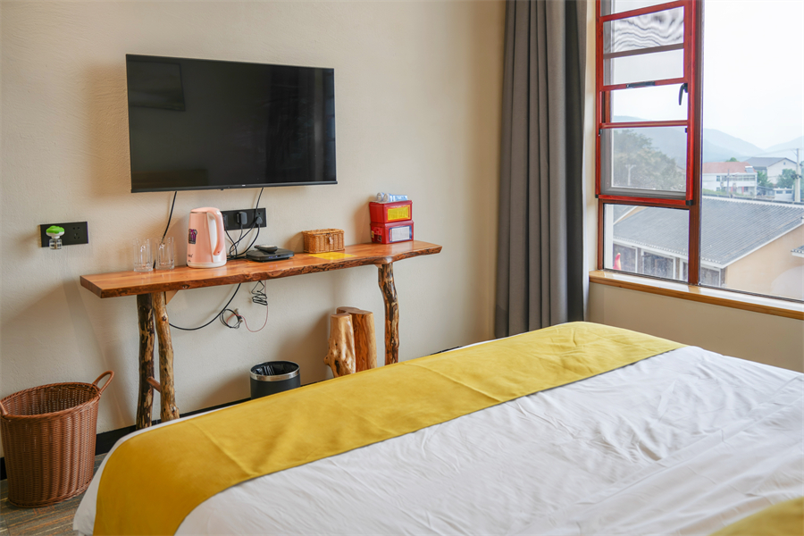 客栈内部设施齐全:餐饮(农家小炒、地方特色菜)、棋牌室,拥有标准间23间、单人房4间、智能化民宿51套,房间结构合理、南北通透、光线充足,让您居停其中亦可尽情享受乡村美好风景。