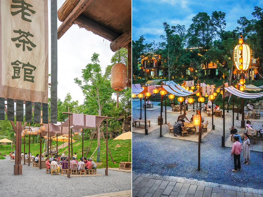 江夏里坐落于江夏区五里界街春申大公园核心区 —— 锦绣村泉井刘湾,紧邻纪念楚国春申君黄歇的江夏黄氏大宗祠,依山傍水,兼具文化底蕴与自然景观优势。110 亩土地化作立体的文化画卷,既藏着 “春申君文化”“码头商帮史” 的厚重,也拥着山水环绕的灵动,茶馆墙绘再现 “千帆竞渡” 盛景,非遗漆扇铺展示荆楚工艺,就连休憩竹椅都复刻旧时码头样式。