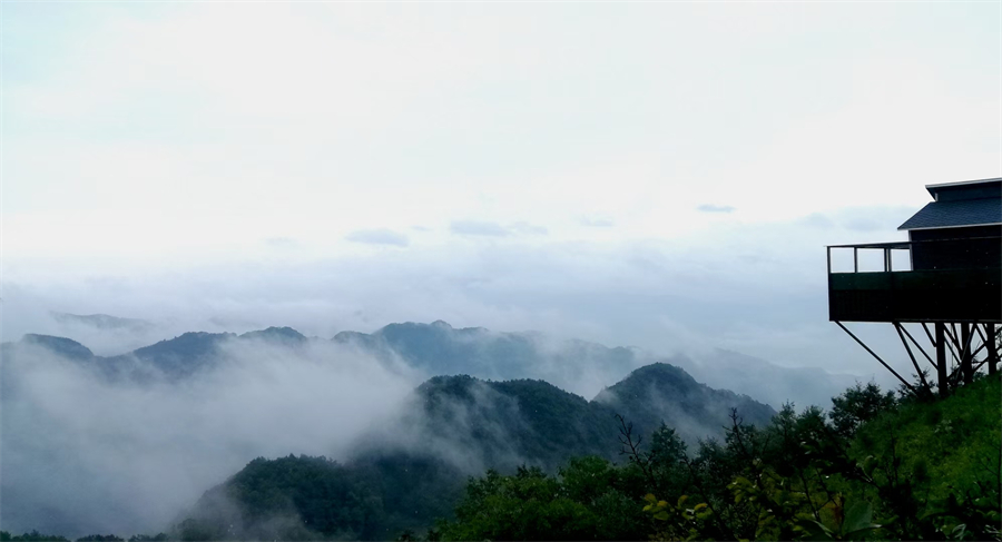 木屋位于海拔 1500 米的六柱垭顶上,周边峰峦叠嶂,云雾缭绕,森林茂密,森林覆盖率高达 95%,负氧离子浓度高,是天然的大氧吧,推窗即可见云海,让游客仿佛置身于仙境之中。