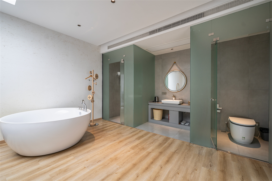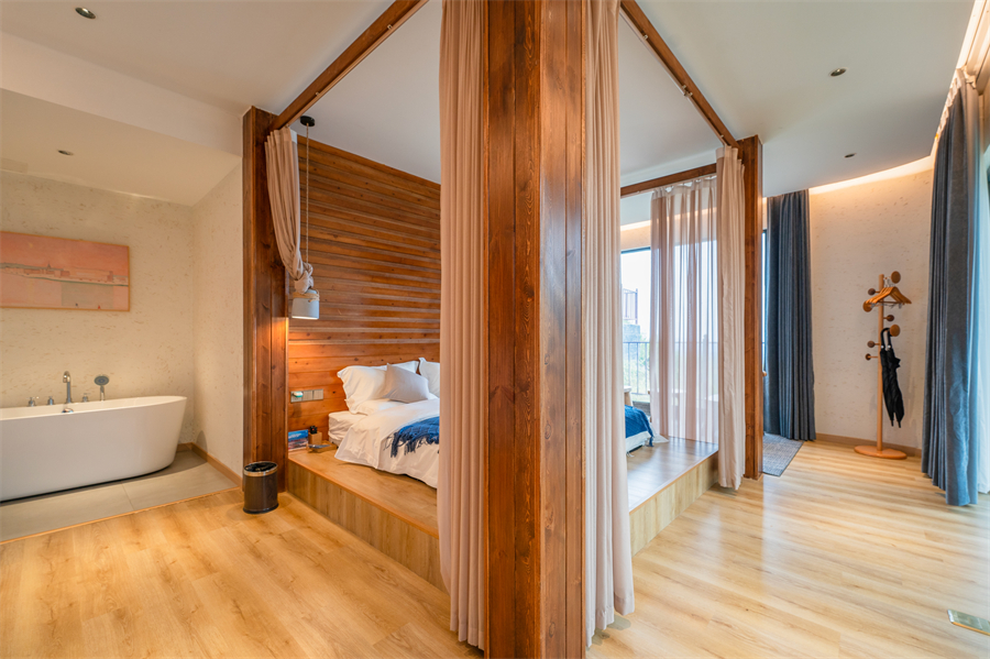 屋内配备齐全的基础生活设施,如舒适的床铺、干净整洁的卫生间、空调、电视等,为游客提供便捷、舒适的居住体验。