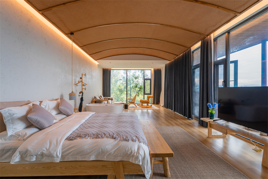 这里峰峦叠嶂,云雾缭绕,空气清新,海拔较高,夏季平均气温只有 20 度,山巅的隐居山舍与群山峻岭、云海景观交相辉映,可让游客享受清凉静心的度假时光。
