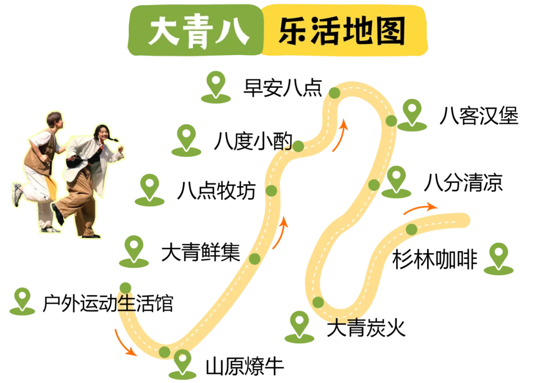 更完整的美食链条覆盖全天:清晨,早安八点面包房的现烤可颂、全麦面包香气唤醒味蕾;正午,八点牧场酸奶屋的手工酸奶搭配坚果,成为健康佐餐;午后,八分清凉饮品店的鲜榨果汁、气泡水承包解渴需求。大青鲜集直采直供各类食材,把新鲜滋味带回家。