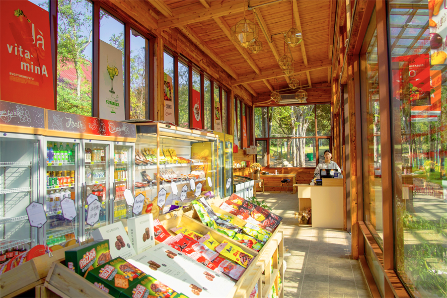 傍晚,八度小酌切换 “日咖夜酒” 模式,现调的 “荒野落日” 鸡尾酒搭配漫天云霞,微醺氛围感拉满;酒足饭饱后,步行至大青鲜集,从牛尾、牛腱到自制香肠、牛肉丸子,各类生鲜与预制菜直采直供,轻松把荒野美味带回家。