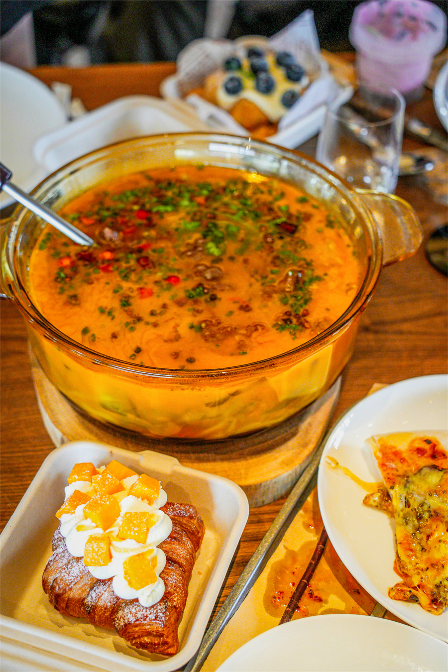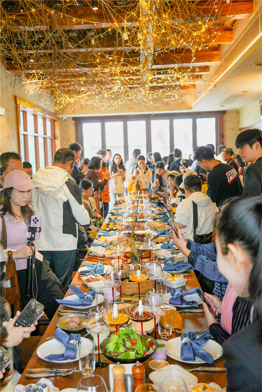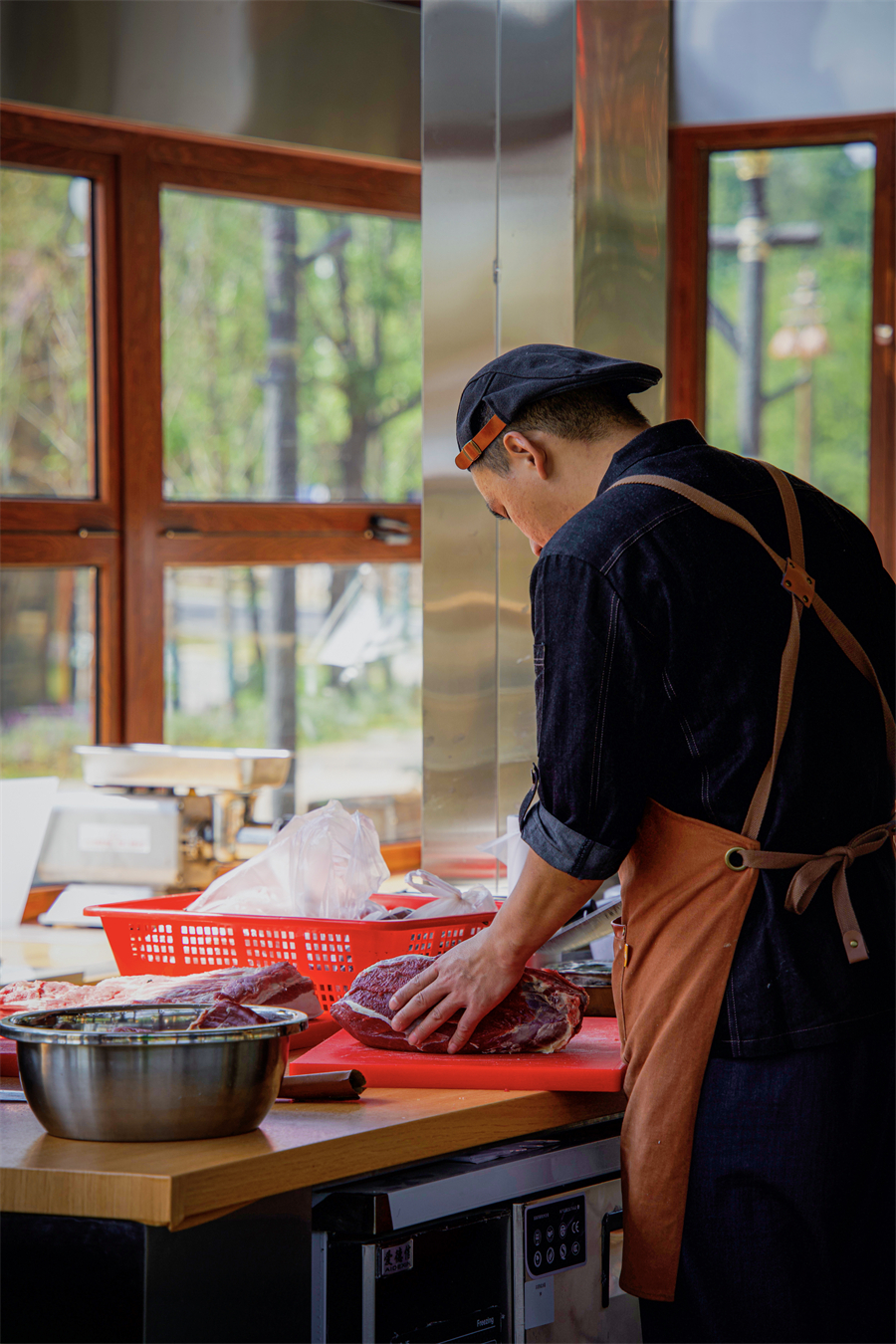 山原燎牛餐厅是绝对的核心 “舞台”:全透明厨房里,星级厨师用低温慢烤工艺处理澳洲高品质牛排,旁边的卤锅咕嘟作响着自有农场直供的本土黄牛肉,食材挑选、加工全程可视化,吃得放心。