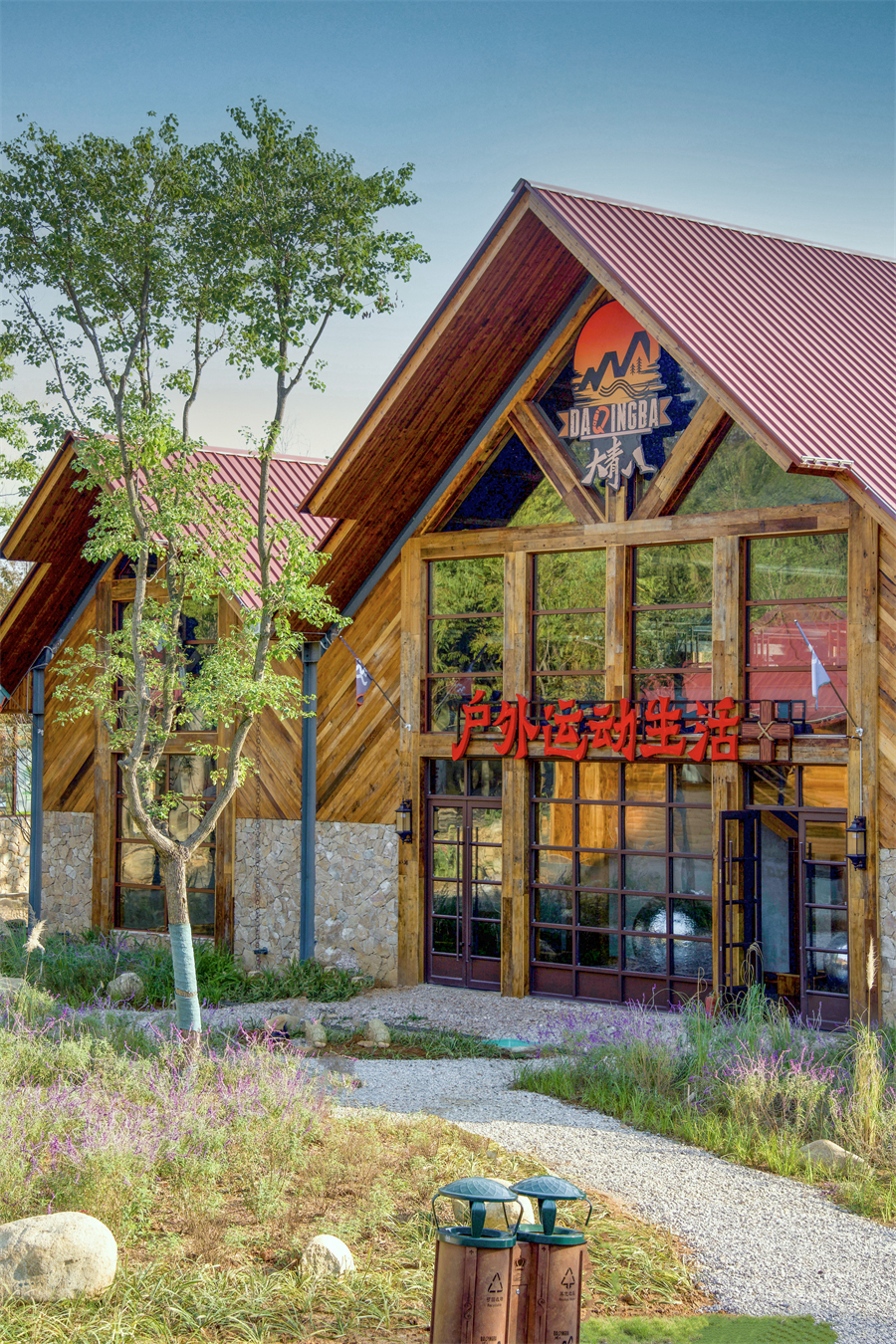 眼前已见紫色鼠尾草簇拥的原木建筑群