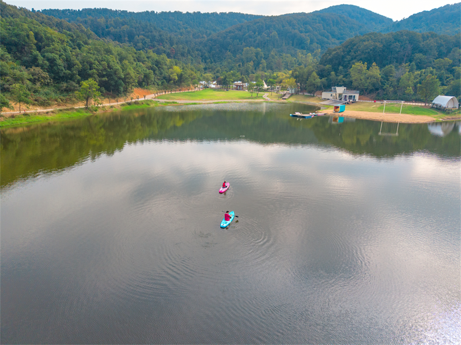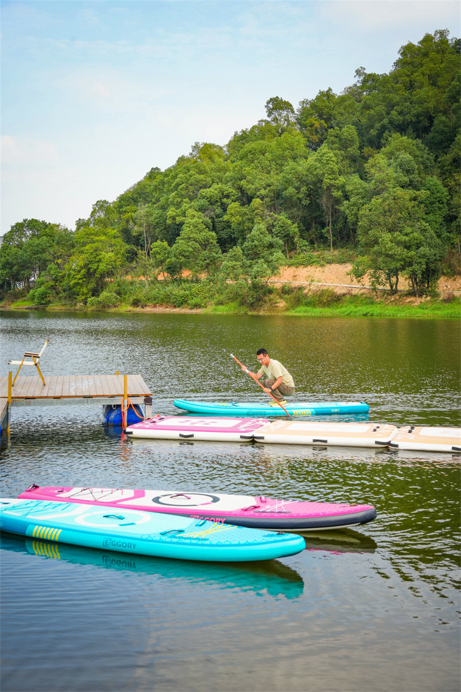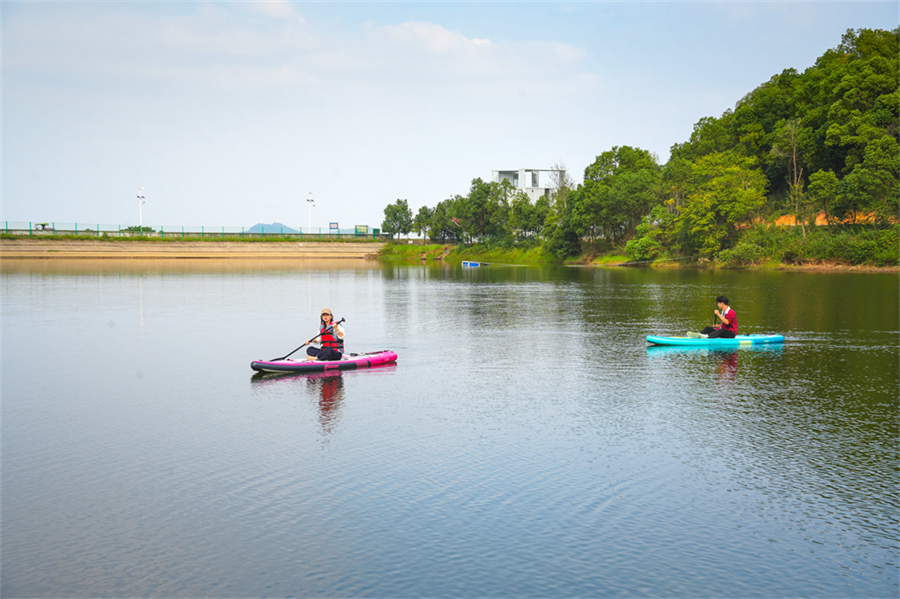 动静皆宜的水上体验:想静就甩杆垂钓,等待渔获的惊喜;想动就玩水上浆板,教练手把手教学,穿好救生衣、握桨划行,几分钟就能上手,连怕水的新手都能玩到意犹未尽。