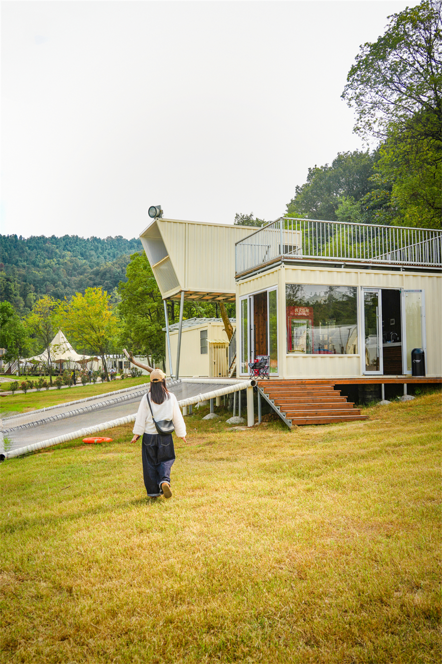 若想偷个懒,白色集装箱打造的接待中心可购买零食饮料;木质结构的咖啡厅自带楼顶露台,秋日午后坐在露台喝咖啡、赏湖景,松弛感直接拉满。