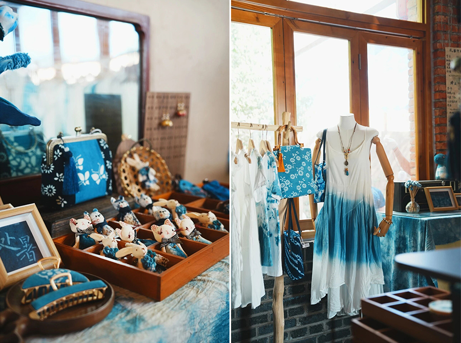 店里将传统蓝染与现代设计相结合,产出了文创、时装、艺术品等衍生品,让古老的技艺以新的美学符号,走入日常。