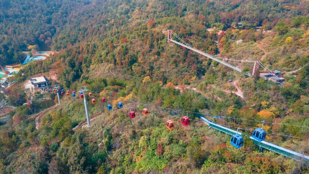 木兰胜天的秋,丰富又和谐。空中缆车无比浪漫,它的颜色和山里风光非常搭配,红色的缆车在一片金黄的景色里看起来那么的漂亮,让人心情也瞬间舒爽了起来。
