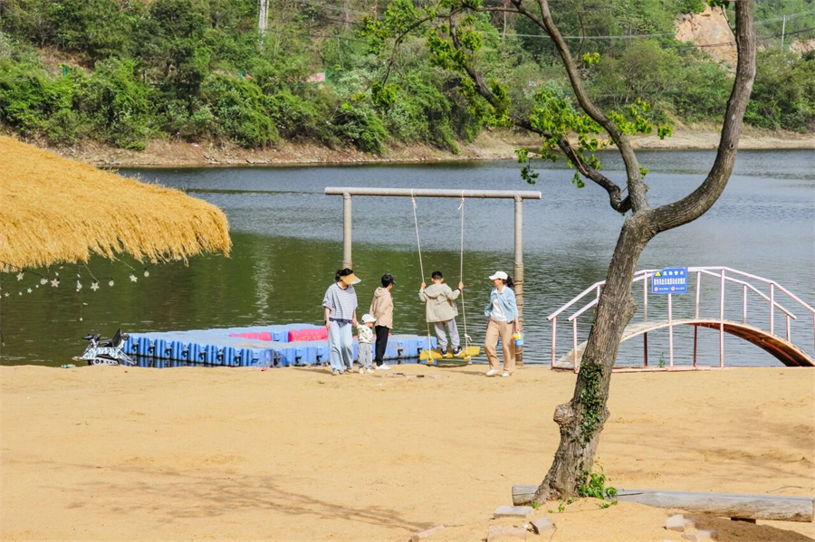 梦幻沙滩牧场:这里三面环山,一面临水,形成了一片宛若与世隔绝的美丽岛屿。脚踩细软银沙,背倚绿意草原,眼前是碧波荡漾。孩子们可以在这里化身小小建筑师,用沙铲构筑梦想城堡,或是在草地上自由奔跑,尽情释放天性。
