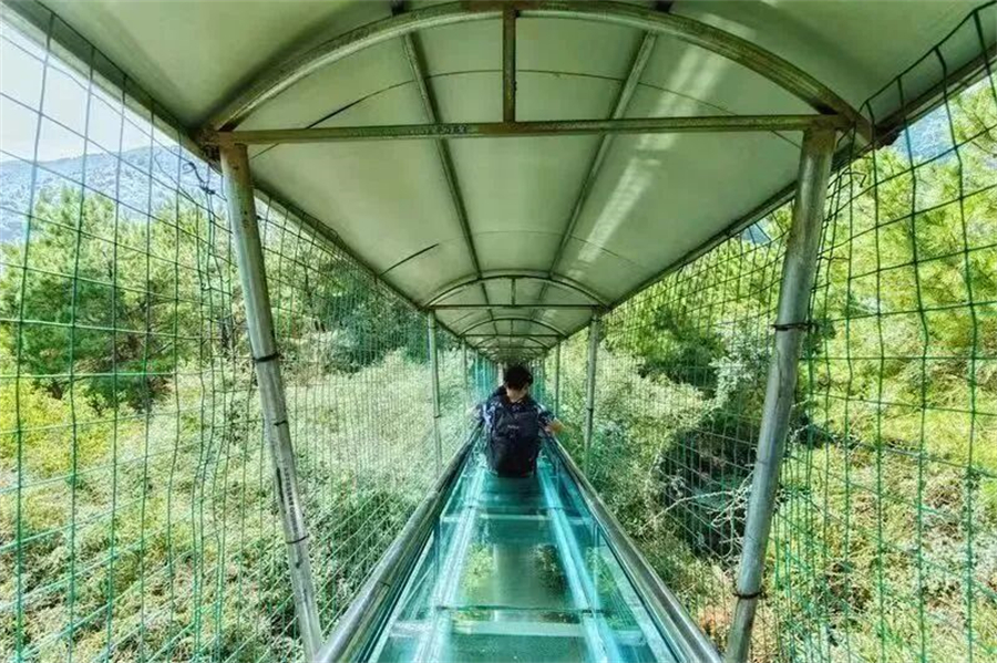 玻璃滑道:是架于青山林海间的一条透明飞龙。它总长800余米,落差达200米,沿山势蜿蜒而下。游客乘特制滑车穿梭于树冠之中,能体验飞一般的速度与刺激,同时将木兰胜天的葱茏山色尽收眼底,是一次胆量与美景碰撞的独特体验。
