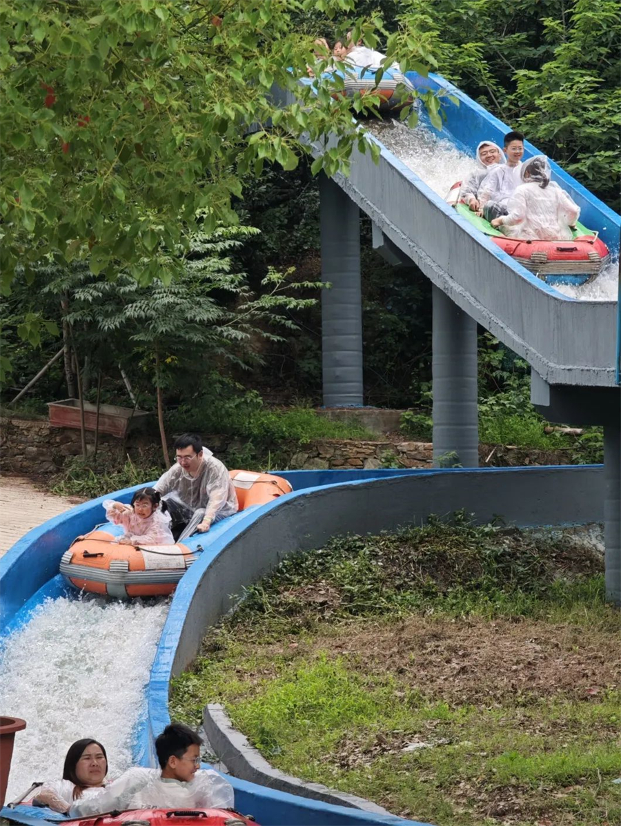 森林漂流:这是一场“窝囊但快乐”的奇妙旅程。全长2000米的河道在茂密丛林中穿梭,时而急湍回旋,心跳加速;时而平缓如镜,可悠闲欣赏沿途的鸟语花香。设计大师级的节奏把控,让亲子家庭也能在绝对安全中,尽享水花带来的清凉与欢乐。