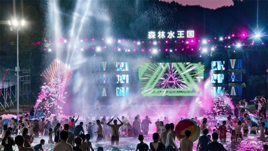 雨林电音派对(季节性):在森林水王国,夜晚的舞台交给激情与音浪。顶级DJ震撼打碟,MC热情互动,整个乐园秒变超燃露天派对现场。万人泼水大战在霓虹光影中激情上演,你可以拿起水枪、水盆,在水中尽情蹦迪,将所有压力与燥热彻底释放。
