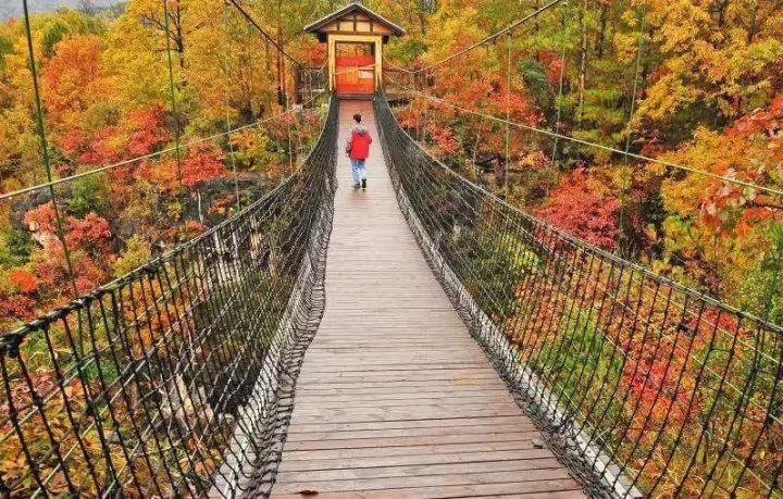 驾车穿行山路,可见“柳暗花明又一村”的秋日意境,十里长峡层林尽染,红叶倒映碧水,飞瀑流泉穿林而过,如诗如画。漫步尧帝神峡 5 公里步道,赏溪流潺潺、红叶飘零,呼吸每立方厘米高达 2.3 万个负氧离子的清新空气,身心皆被治愈。