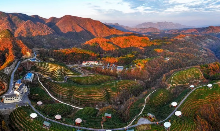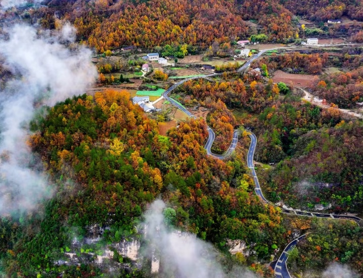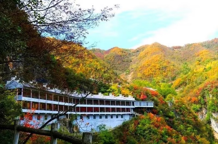 这里是云端赏秋绝佳处,登高可见红霞漫山、云海翻腾,漫山黄叶与红瓦古寺相映成趣。清晨观日出,云海缥缈如仙境;日暮赏群山,披霞绚烂似油画,每一幕都是秋日限定的绝美画卷。