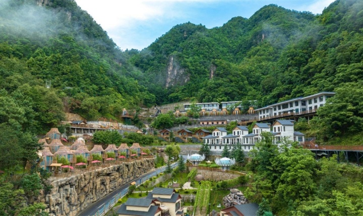 探秘老龙宫溶洞,看钟乳石在灯光下映出斑斓光影,聆听尧帝治水的古老传说,感受自然与人文的深度交融。景区内的村落错落有致,白墙黛瓦与秋日红叶相映成趣,仿佛世外桃源。