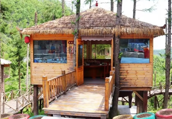 藏于峡谷深处的特色民宿,木质结构与山林相融,推窗可见层林尽染,夜晚可听秋风絮语,体验 “与自然同呼吸” 的野奢感。在这里,远离城市的喧嚣,沉浸在大自然的怀抱中,度过一个宁静而舒适的夜晚。