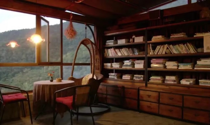 云畔客栈三楼有观云雾的【漫云书屋】,可看落日、观云雾,仿佛置身在云雾中,可读书休闲。