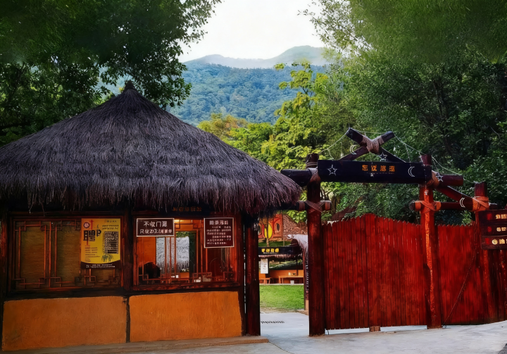 秋日里的 “暖身秘境”藏于青山环抱间,深秋时节池边林木渐染金黄与赤红,泡在 42℃恒温的天然温泉中,感受 “暖意浸身、秋景入眼” 的双重惬意;温泉周边设有秋景步道,饭后漫步可赏落叶铺径、溪水潺潺,尽显秋日慵懒氛围。