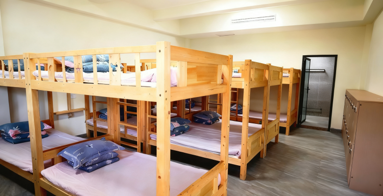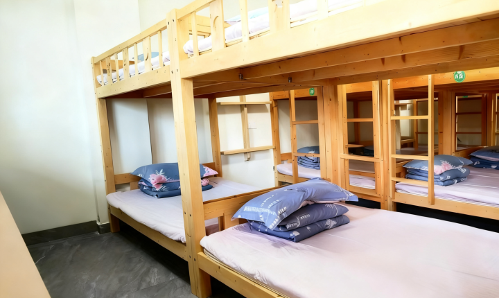 研学宿舍,实木上下床,内有卫生间,洗澡堂。可容纳200人住宿。