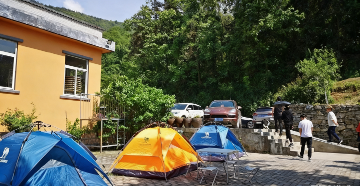 绿野仙踪露营,可容纳30顶帐篷,配套服务设施秘林驿站,洗澡间、卫生间、小吃部、帐篷租赁等服务。
