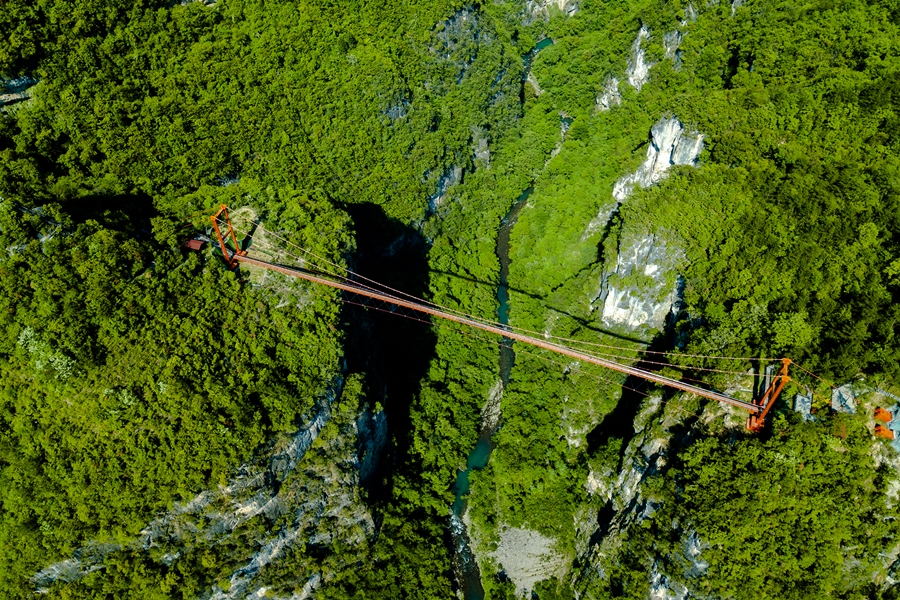 沿着景区核心步道徒步(全程约5公里,难度适中);挑战“华中第一野索桥”;乘坐景区观光车(全程约3公里)可随时下车拍照、游玩,兼具观光、徒步、探险等多种玩法,是茶旅途中的生态休憩地。