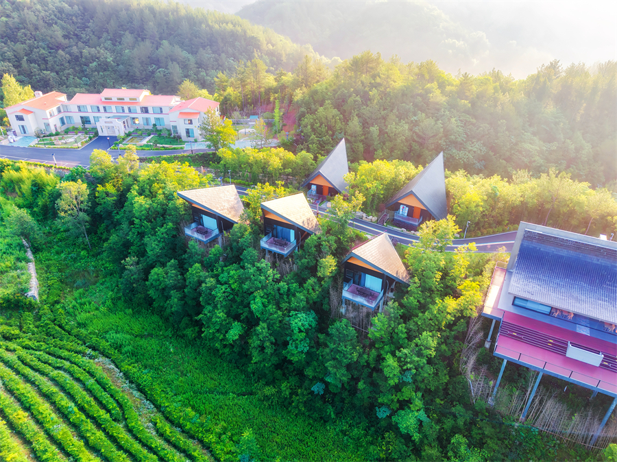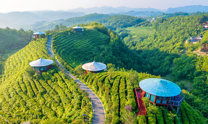 高山生态茶园,海拔高、气候适宜,茶叶品质优良,茶园错落有致,四周青山环绕,风景优美,更有茶源民宿集群(森林童话木屋、茶香客栈、轻奢山居),实现 “采茶 — 制茶 — 品茶 — 宿茶乡” 的一站式闭环体验,晨起闻茶香、夜枕松涛眠。