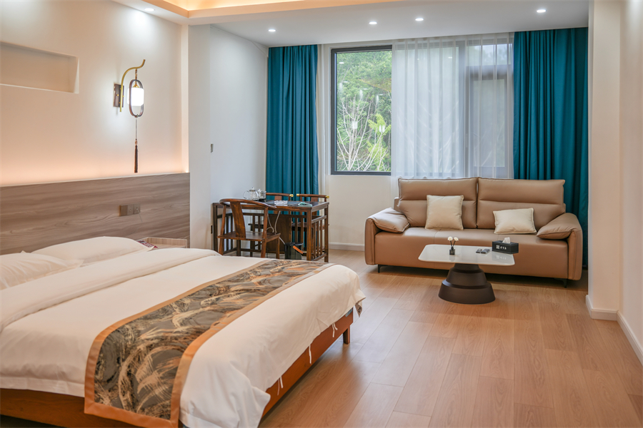 茶乡主题酒店,装修风格融合茶文化元素,配套茶室、露台、餐厅,推窗可见茶园风光,是茶旅途中的高端休憩地,主打“茶文化康养”,兼顾休闲、度假、美食体验。