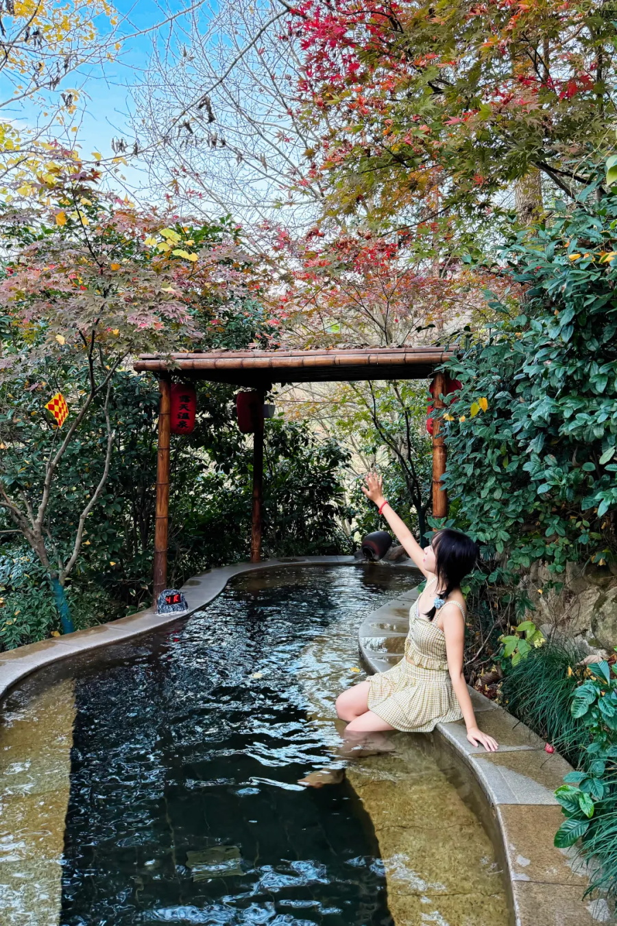 缓缓浸入其中时,仿佛被一双温柔的大手轻轻环抱,尽情享受温泉水的滋养。
