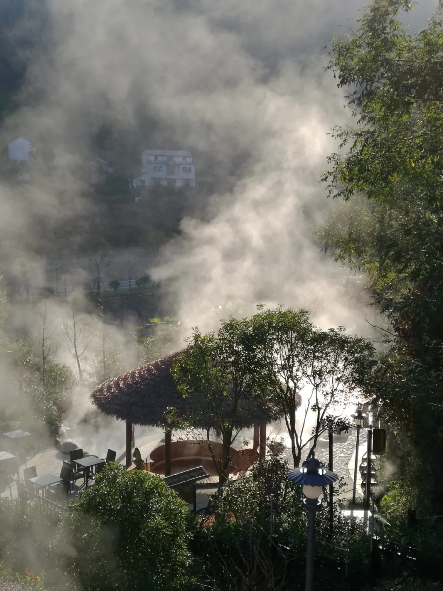 沿着小径前行,一路雅致又自然。绿植环绕的泡池足够私密,敞开怀抱,等你落入一片温暖。热气袅袅升腾,似轻纱、若薄雾。