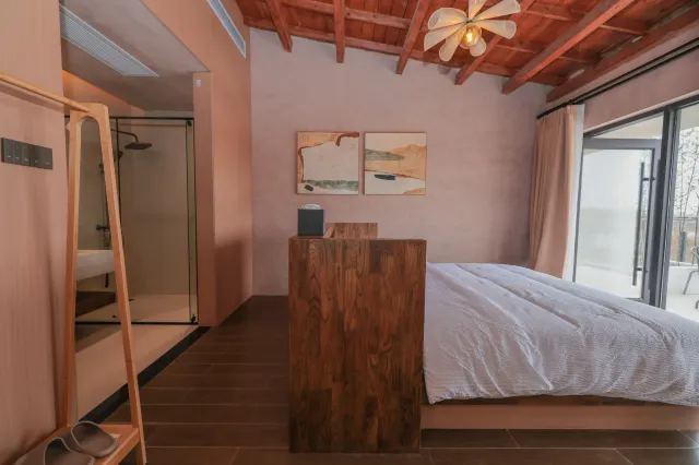 民宿设计师以金水河文化为底色,把传统民居的红砖墙、青瓦顶与现代设计的极简线条巧妙融合,打造出兼具乡土气息与设计美学的主题客房。