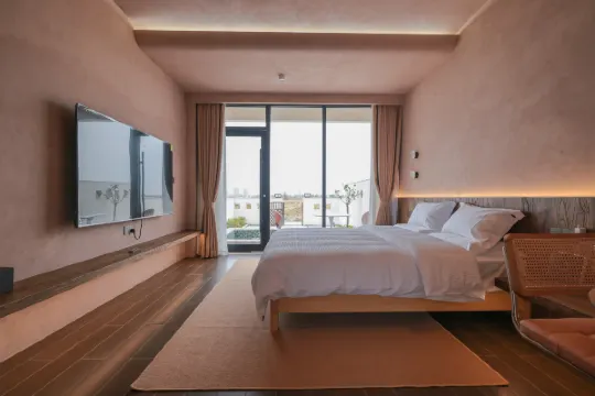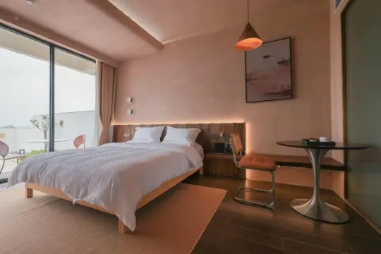民宿设计师以金水河文化为底色,把传统民居的红砖墙、青瓦顶与现代设计的极简线条巧妙融合,打造出兼具乡土气息与设计美学的主题客房。