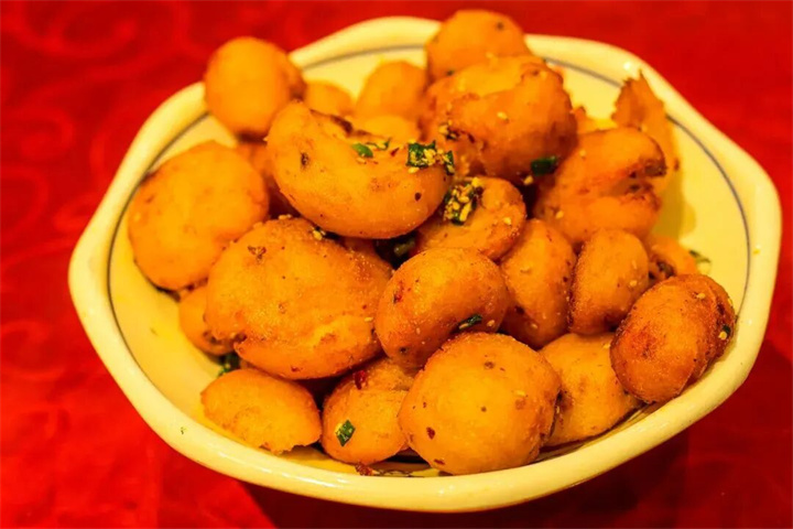 洋芋去皮切块油炸或油煎至外皮金黄酥脆,内部软糯。撒上葱花、辣椒面等调料,便成了常见街头小吃和家常菜。
