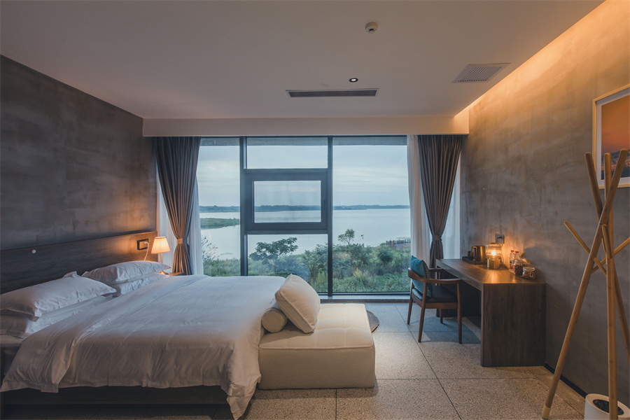 民宿依湖而建,坐拥一线生态湖景风光,质朴而具艺术气息的红砖房,与优美的湿地生态环境和谐相融。