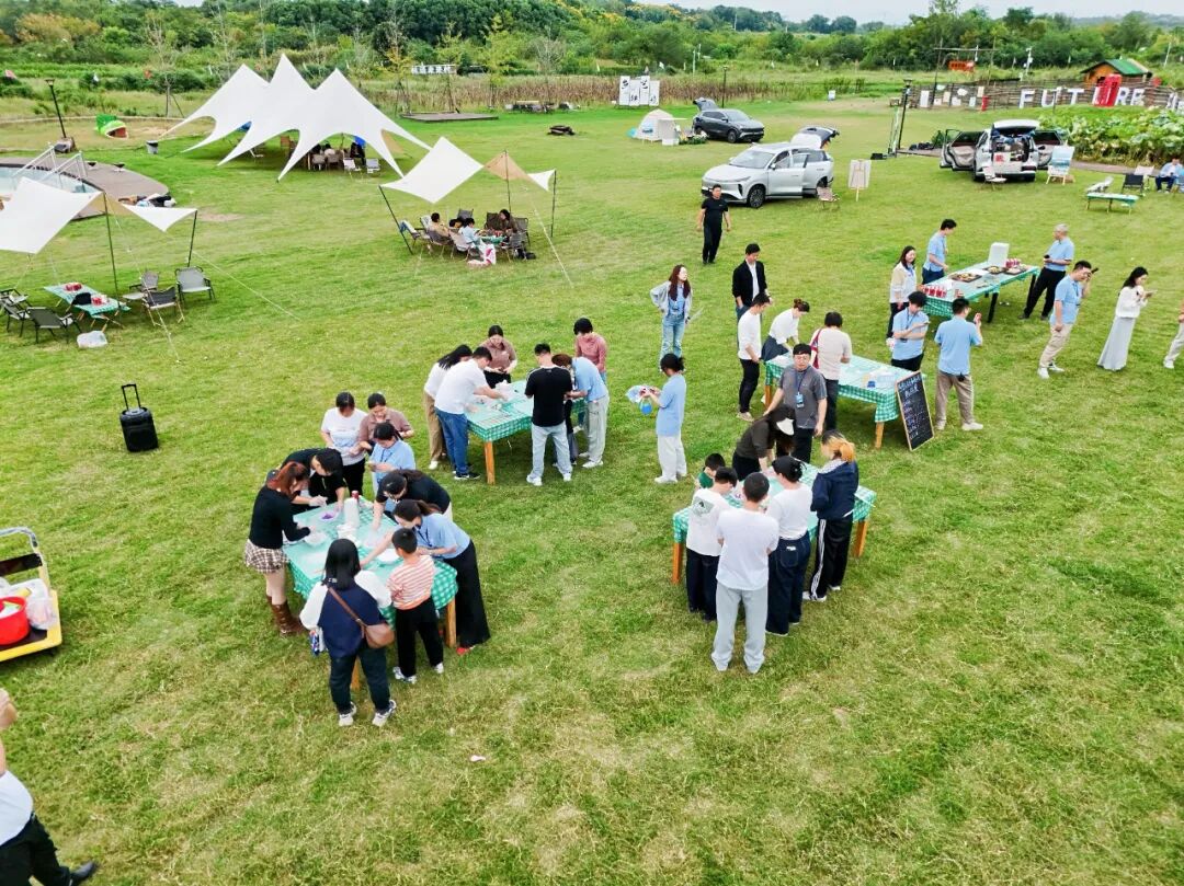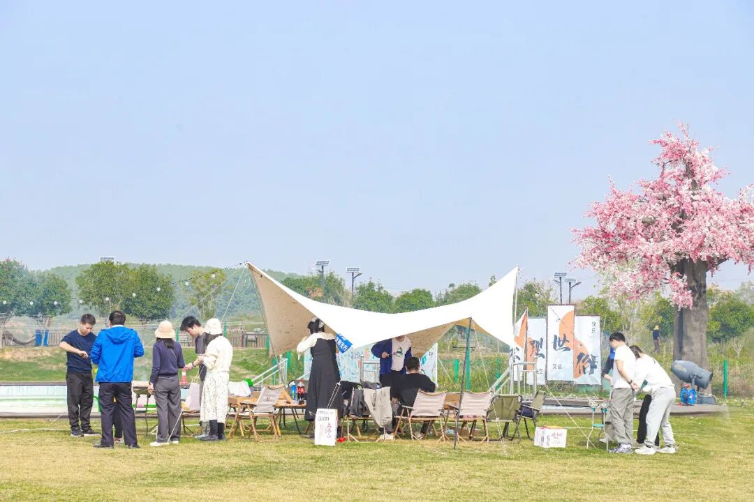 在林语未来村的乡耕艺境露营农场内,支起一顶帐篷,或是围坐在天幕下煮茶烧烤。看着孩子在旁边的无动力乐园里攀爬、玩蹦床,远处是金灿灿的花海,耳边是欢声笑语,这才是春天的正确打开方式。