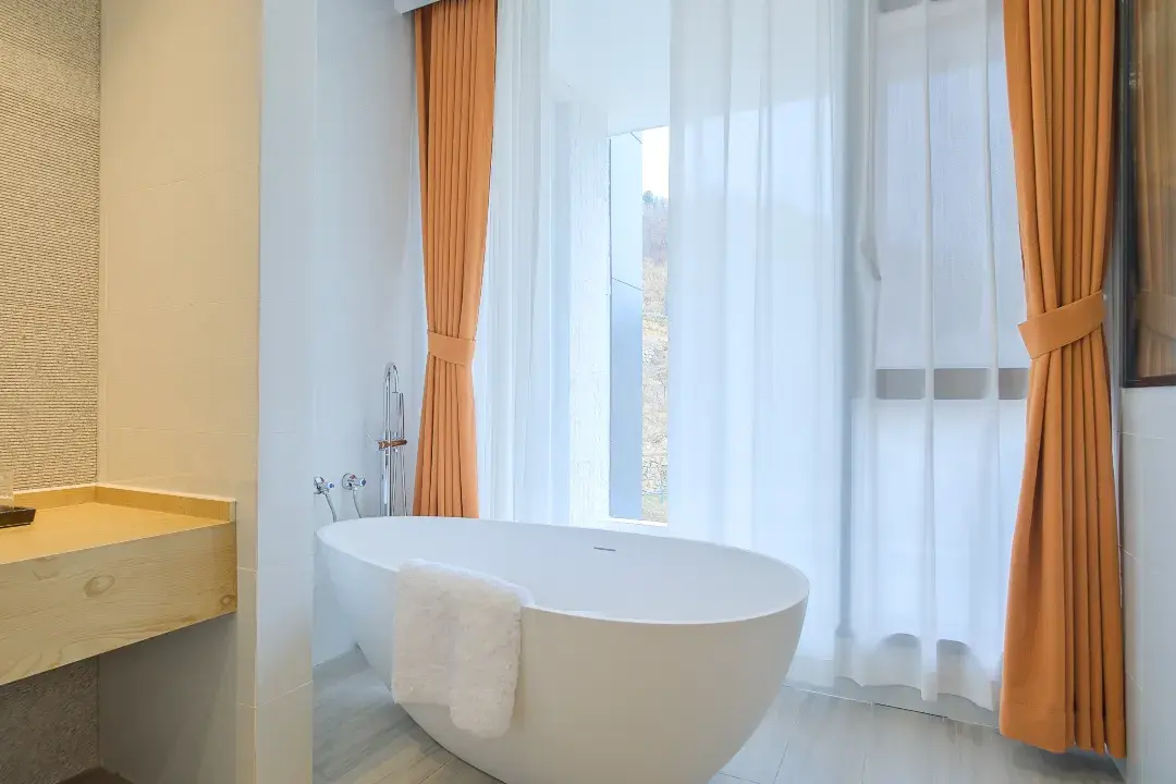 房型特点:直角型落地玻璃窗可俯瞰乡村全景,茶山、乡村、东方山都可映入眼底,阳光普照面积广,带书桌书柜等,房间内可看见盘旋的半山公路,日夜之景皆有韵味,房屋面积80㎡,最佳山野观景房。