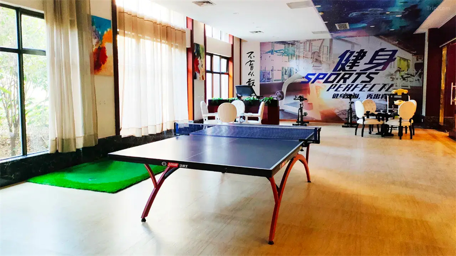 同时,酒店还配备了益智健身类设施,室内迷你高尔夫、VR 动感 5D、乒乓球、动感单车、跑步机,甚至还有飞行棋、象棋等,家长也能参与其中,和孩子一同享受欢乐时光。