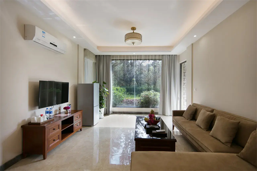 3 房湖畔别墅以 200㎡空间打造湖居三重境,双层功能分区明确且户外延伸丰富 ——1 楼设配实木餐桌的客餐厅、全自动麻将室与公共卫浴,还衔接约 30㎡独门独户的独立入户小院,小院可直通 10㎡临湖亲水平台。