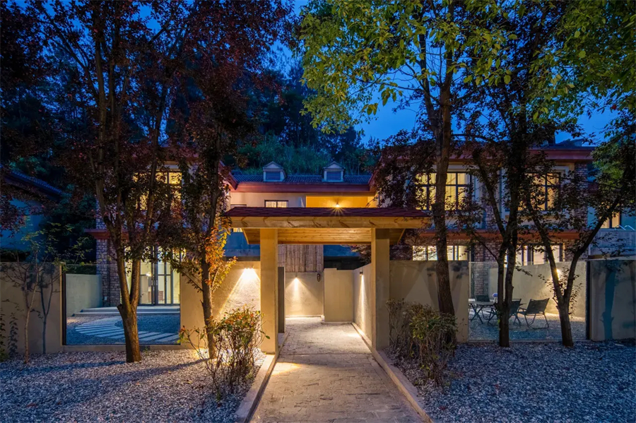 另设悬挑式泡池阳台,泡池嵌入向外悬挑的观景台,可实现 “人在汤中,身在画中” 的 270° 湖景私汤体验,从室内功能区到户外小院、再到亲水平台与悬挑泡池,层层延伸尽显湖居惬意。