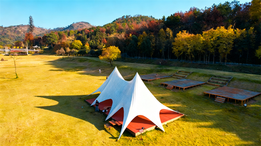 当秋阳洒向山谷,1 万多棵银杏树渐染金黄,红林悄然铺展,野村谷便成了藏满惊喜的秋日秘境。无论是带娃寻趣、与挚友欢聚,还是独自赴一场与自然的约会,这里都能让你在柴米油盐的烟火气与山川草木的诗意间,找到属于自己的秋日浪漫。